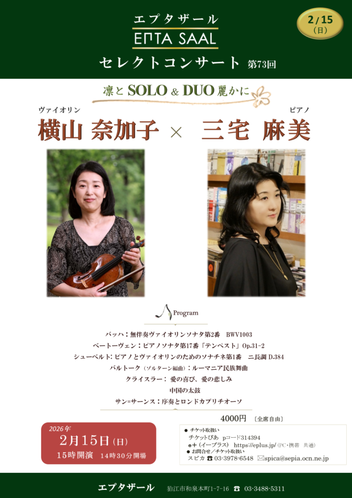 【日時】 2026年2月15日(日) 15時開演 (14時30分開場)
